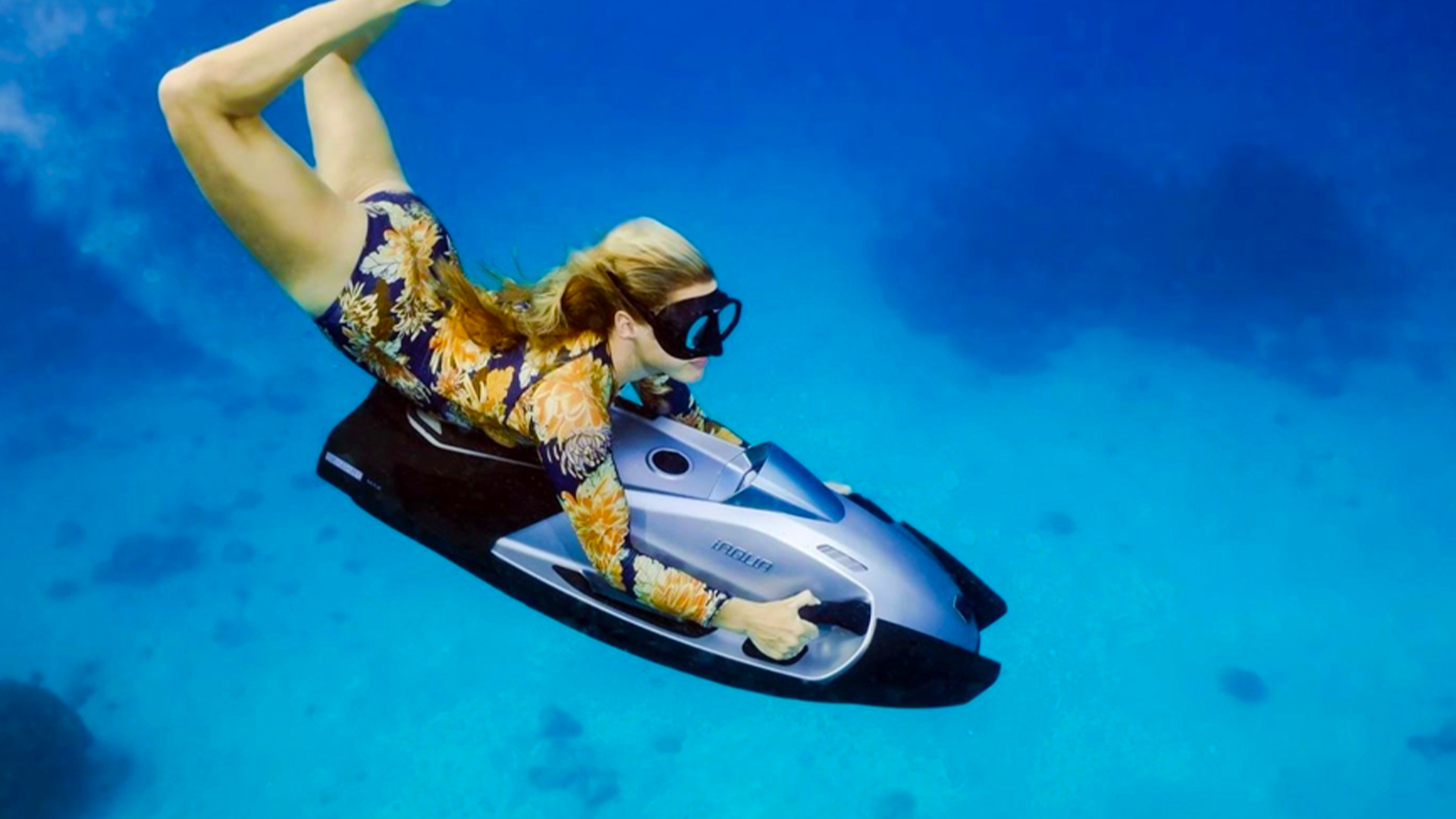 The I-Aqua is a high-end electric underwater scooter. Designed to explore the surface of the sea and/or beneath it.
